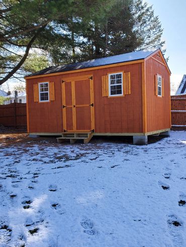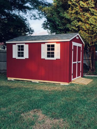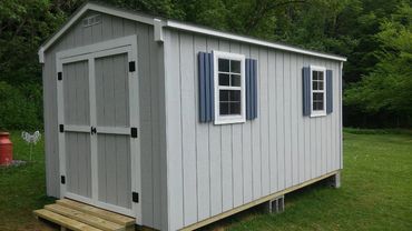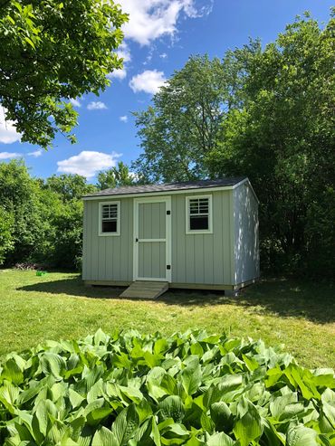 Paint and stain color and roof shingles of your choice. Door sizes of your choice and two windows on sheds 8x12 and larger are included in shed price.