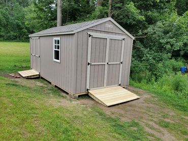 We pay twenty dollars towards each gallon of paint or stain used. Labor for steps and/or ramps built is also included in shed price. You pay only for the materials used, which usually ranges between 50 and 130 dollars.