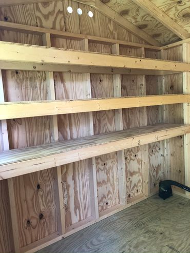 2”x 6” pressure treated floor joists instead of 2”x 4”s makes a very durable floor topped with 3/4” pressure treated plywood. Also, walls are built with 5/8” siding instead of 3/8” which makes very durable walls.